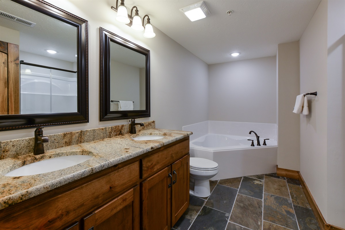 - All Bathrooms have natural slate flooring and a granite top double vanity with 2 sinks!